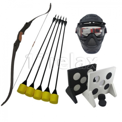 器械方面一般由弓把、弓片、弓弦、箭台、瞄具构成。射手需要护臂、护指(夹箭器)、箭壶根据客户情况选择佩戴护胸。场地需要箭靶、靶架、档箭布。弓箭登记: 娱乐级:一体成型塑料弓。弓把、弓片等都预设一体。入门级木质弓:弓把、弓片、弓弦、箭台、钢片瞄。初级竞技型:铝镁合金弓把、木质弓片、弓弦、钢丝箭台、刻度瞄具。
